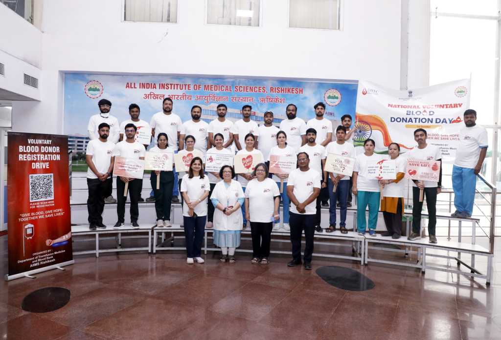 राष्ट्रीय स्वैच्छिक रक्तदान दिवस पर एम्स ऋषिकेश में रक्तदान शिविर का आयोजन
