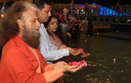 स्वामी चिदानन्द सरस्वती के पावन सान्निध्य में विश्व विख्यात गंगा आरती में किया सहभाग रूद्राक्ष का दिव्य पौधा किया भेंट...