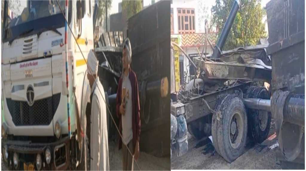रुड़की/मंगलौर : गुरुवार सुबह मंगलौर झबरेड़ा रोड पर एक बड़ा हादसा होने से टल गया। बताया जा रहा है कि जमुना की रेत से भरा एक डंपर स्थानीय दुकान पर रेत उतारने पहुंचा था। रेत उतारते समय अचानक डंपर का पिछला हिस्सा ऊपर उठ गया और ऊपर से गुजर रही हाईटेंशन और एलटी बिजली लाइन की चपेट में आ गया। टक्कर इतनी जबरदस्त थी कि डंपर के परखच्चे उड़ गए और पूरे इलाके में अफरा-तफरी मच गई।प्रत्यक्षदर्शियों के अनुसार, जैसे ही डंपर की बॉडी ने बिजली की लाइन को छुआ, जोरदार धमाका हुआ और चिंगारियां उड़ने लगीं। आसपास के लोगों में भगदड़ मच गई और सभी ने भागकर अपनी जान बचाई। गनीमत यह रही कि डंपर चालक और परिचालक को केवल मामूली चोटें आईं और कोई जनहानि नहीं हुई।
