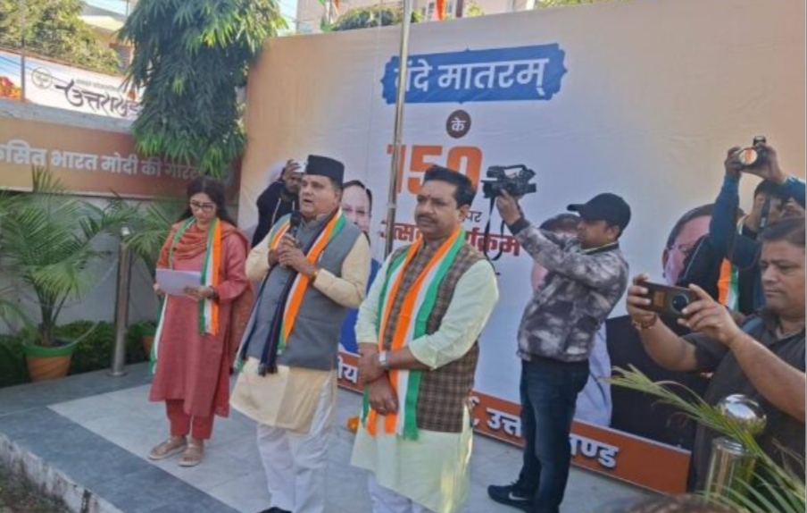 देहरादून : वंदे मातरम के 150 वर्ष पूर्ण होने के उपलक्ष्य में भारतीय जनता पार्टी ने पूरे प्रदेश में ‘वंदे मातरम 150 अभियान’ की शुरुआत की। पार्टी मुख्यालय में आयोजित भव्य कार्यक्रम में प्रदेश अध्यक्ष महेंद्र भट्ट तथा प्रदेश महामंत्री संगठन अजेय कुमार के नेतृत्व में सामूहिक वंदे मातरम गान के साथ अभियान का शुभारंभ किया गया। कार्यक्रम में पार्टी पदाधिकारियों, कार्यकर्ताओं एवं समाज के विभिन्न वर्गों के लोग बड़ी संख्या में उपस्थित रहे।