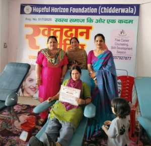 शिविर में युवाओं, महिलाओं और वरिष्ठ नागरिकों ने स्वेच्छा से रक्तदान कर मानवता और सेवा की मिसाल पेश की।
